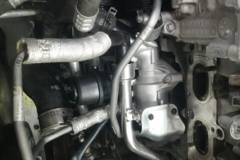 エキゾーストマニホールドとタービンを取外し後、ウォーターポンプの取り外し作業になります。