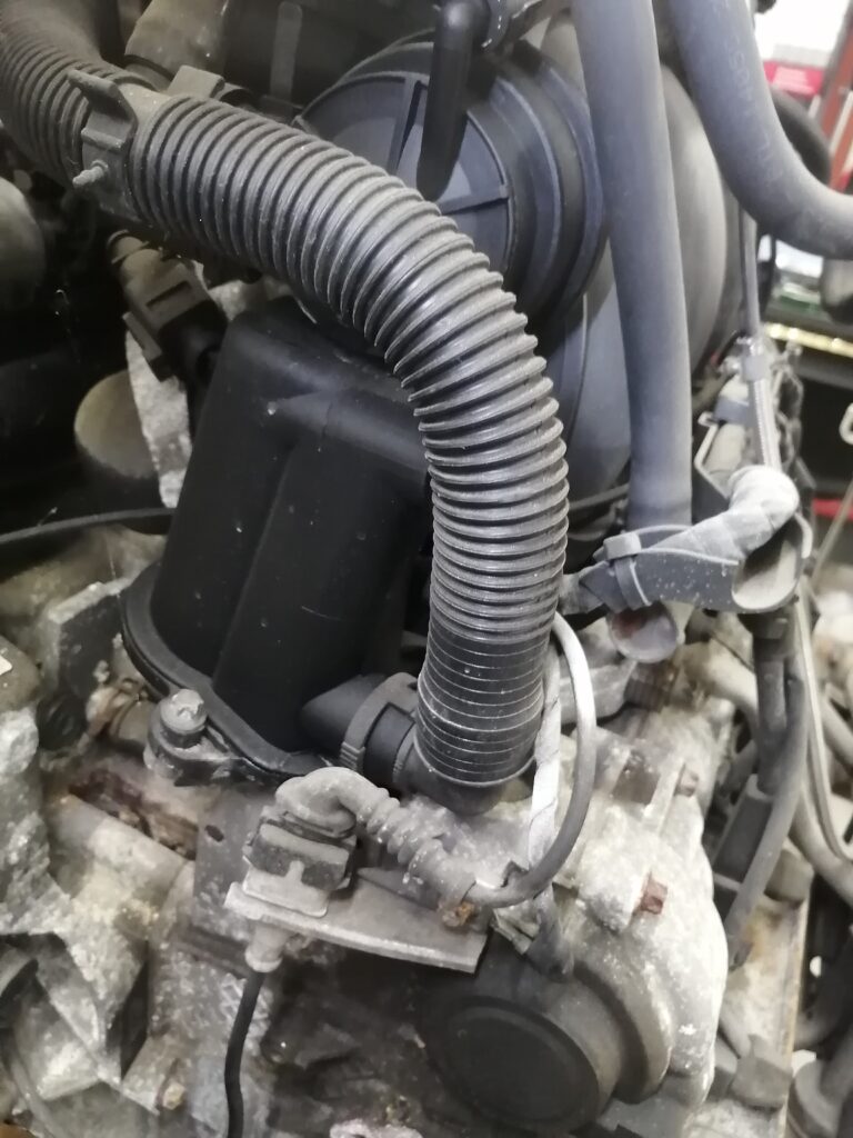 エンジンを降ろすとオイルセパレーターより水漏れしていることが確認できました。